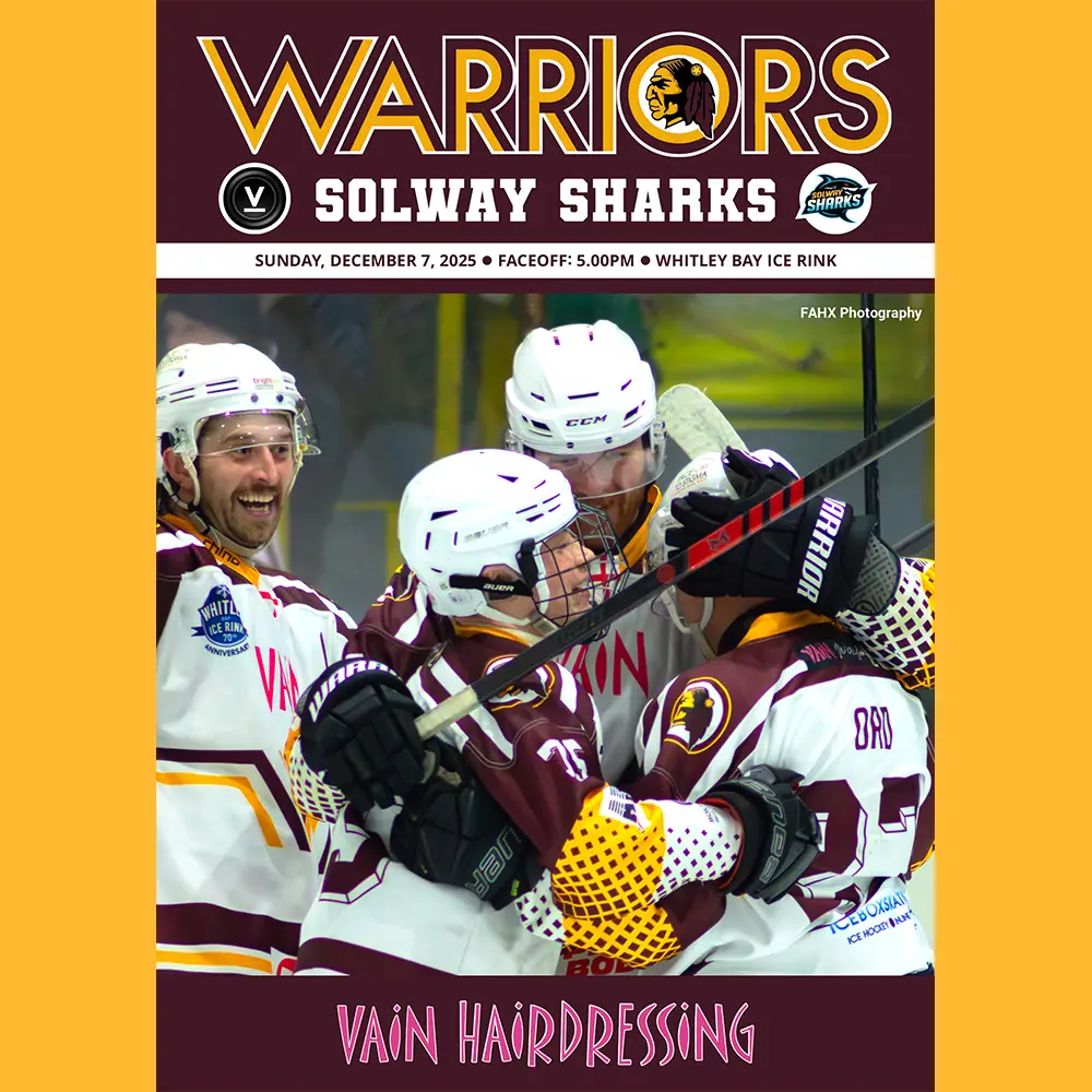 Match programme for the SNL game against Solway Sharks SNL at Hillheads on Sunday 7 December 2025 – available for download only.